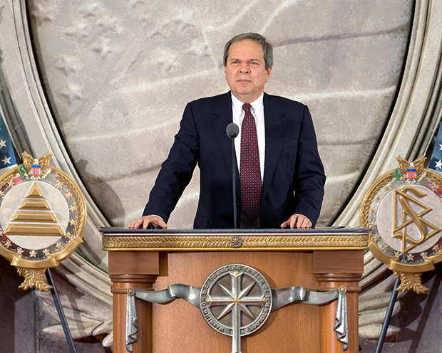 Was den Tag jedoch wahrhaftig bedeutsam machte, war die Anwesenheit und die Ansprache von David Miscavige, der auf die lange Geschichte von L. Ron Hubbard und der Kirche in der Hauptstadt der USA verwies. Im Zusammenhang mit der amerikanischen Geschichte und Kultur sprach er insbesondere über „eine Unabhängigkeitserklärung, in der geschrieben ist, dass alle Menschen gewisse unveräußerliche Rechte haben, einschließlich des Rechts auf Leben, Freiheit und das Streben nach Glück.