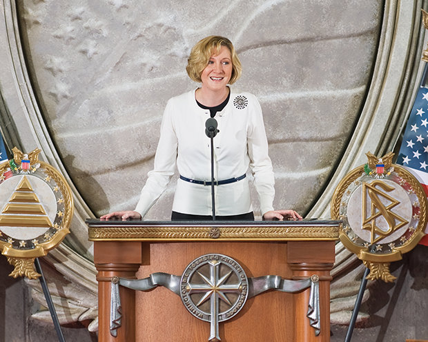 Ja, wir schauen auf eine lebendige Verkörperung der Freiheit und Gleichheit, durch welche diese Nation ursprünglich inspiriert wurde, denn ja, diese Kirche tritt für Leben, Freiheit und das Streben nach Glück ein. Und ja, sie steht heute aufgrund der Freiheit hier, auf der diese Nation aufgebaut wurde – die Religionsfreiheit.