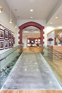 Das ultramoderne Gebäude präsentiert sich in einem minimalistischen Stil mit mehrgeschossigen Glasfassaden, die dem Beton des großen Gebäudes eine beeindruckende Leichtigkeit vermitteln. Im Park vor dem Gebäude windet sich der Blue Gum Creek durch den 3,5 Hektar großen Eukalyptus-Wald, der sich einem Garten Eden gleich im Herzen des Großraums von Sydney befindet.