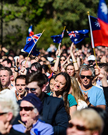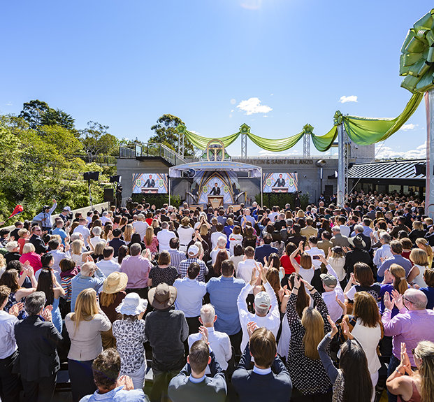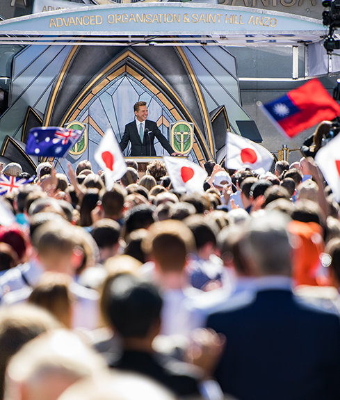 David Miscavige, Vorstandsvorsitzender Religious Technology Center, begrüßte die mehr als 2500 Scientologen, die aus der ganzen Region angereist waren, um die Einweihung der neuen Idealen Fortgeschrittenen Organisation für Australien, Neuseeland und Asien zu feiern.