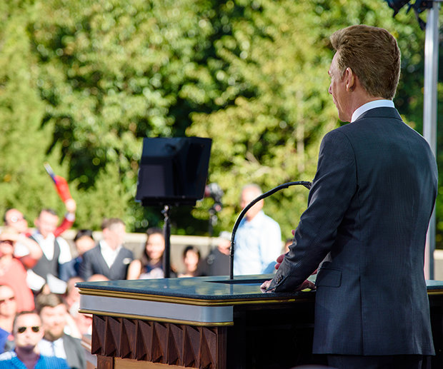 Als er sich darauf vorbereitete, das Eröffnungsband zu zertrennen und so eine neue Zukunft für Scientology in Australien und Asien einzuleiten, wies David Miscavige auf die besondere Bedeutung des Moments hin: „Und damit kommen wir zu den letzten Minuten, bevor sich diese Türen zur Ewigkeit öffnen. So ist dies der perfekte Moment, sich zu vergegenwärtigen, was es bedeutet, jetzt über eine Ideale Fortgeschrittene Org zu verfügen, die praktisch nicht von dieser Welt ist. Und damit weihe ich zu Ehren des immerwährenden Traumes unseres Gründers dieses neue ideale spirituelle Tor im Namen von L. Ron Hubbard und völliger spiritueller Freiheit ein.“