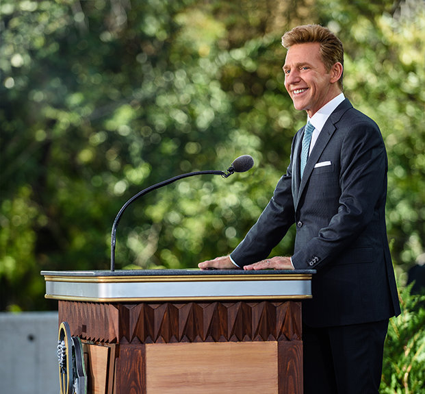 Als er beschrieb, wie er „zum ersten Mal diesen Palast im Wald, am Rande des Wunderlands der Eukalyptusbäume erblickte“, sagte David Miscavige: „Der zutreffendste Begriff, über ‚atemberaubend‘ hinaus, war ‚absolut perfekt‘. Nun, das trifft auch auf das Timing Ihrer Eröffnungsfeier zu.“