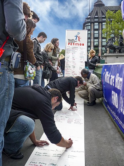 -präventionsinitiative haben in Großbritannien bereits beinahe 5 Millionen Exemplare der „Fakten über Drogen“-Informationshefte verteilt, einschließlich 1,5 Millionen, die bei den Olympischen Spielen in London, bei den Glasgow Commonwealth Games und beim Edinburgh Festival verteilt wurden. Auf jährlich über 400 Drogenpräventions-Veranstaltungen informieren ehrenamtliche Helfer Millionen von Menschen über die Kampagne. So organisierten britische Scientologen diesen Sommer ein siebenwöchiges Fußballturnier für ein drogenfreies London, bei dem die Athleten bei jedem Spiel für ein drogenfreies Leben warben. Auch die Jive Aces, Großbritanniens Swing-Band Nr. 1, werben in allen Konzerten und auf allen Festivals, bei denen sie auftreten, für ein Leben ohne Drogen. - „United for Human Rights“ (Gemeinsam für Menschenrechte) und „Youth for Human Rights“ (Jugend für Menschenrechte): Zur Unterstützung der Verwirklichung der Allgemeinen Erklärung der Menschenrechte der Vereinten Nationen führen Scientologen aus Großbritannien zu Hause und auswärts – in Ländern wie Indien, Pakistan und Nepal – Projekte durch, um die Menschen über die Menschenrechte zu informieren. Unter Verwendung der Materialien dieser beiden Initiativen haben sie bereits erreicht, dass mehr als 250 000 junge Menschen über die Menschenrechte informiert wurden.