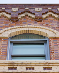 Durch sorgfältige Restaurierung bewahrte die Kirche die ursprünglichen Besonderheiten des Coachman-Gebäudes, einschließlich seiner charakteristischen Ziegelsteinfassade, seines speziellen flämischen Ziegelsteinmusters und seiner Bogenkonsolen in den oberen Stockwerken.