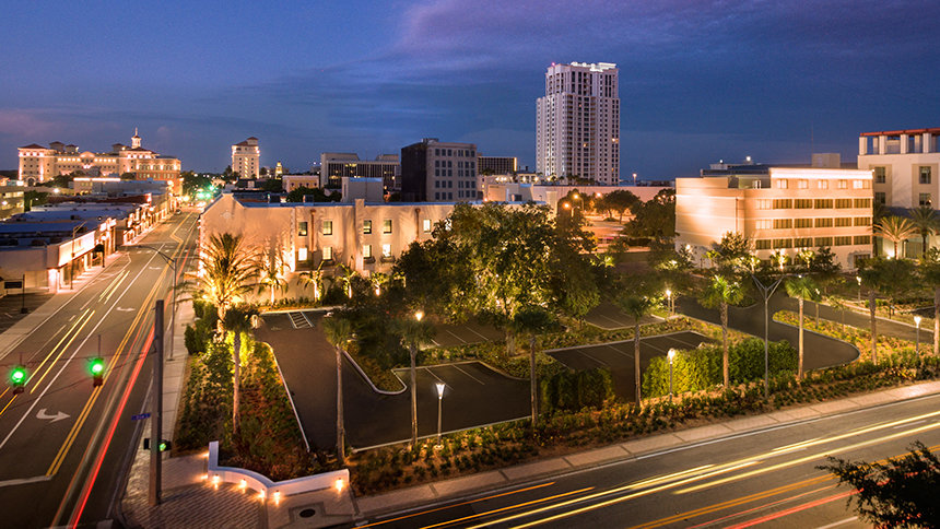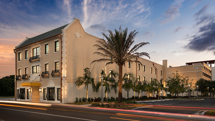 Das 1927 erbaute, 1600 Quadratmeter große West-Coast-Gebäude hieß ursprünglich das „West Coast Hotel“. Es galt als eines der gepflegtesten Kleinhotels in Florida. Hier fanden vielfältige Veranstaltungen statt – so etwa der Miss-Florida-Schönheitswettbewerb – und auch die berühmten Philadelphia Phillies (ein amerikanisches Baseball-Team) hielten sich während ihres Frühjahrstrainings in diesem Hotel auf. Die Kirche erwarb es 1981.