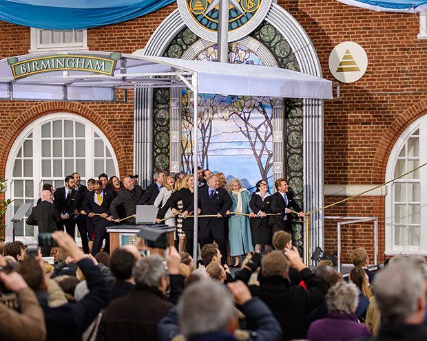Birmingham hält weiterhin eine führende Position in der Fertigung und Industrie inne und die Einweihung feierte den „Brummie“-Geist der Erneuerung, alles zum Rhythmus des elektrischen Herzschlags der Stadt. Die Feier begann mit einer Ode an Birminghams Wurzeln des Heavy Metals. Es folgte eine Reihe von Reden von Würdenträgern, die davon sprachen, dass ein hoch geschätztes Wahrzeichen der Gemeinde wiedergegeben wurde und dass dank des praktischen Wissens von L. Ron Hubbard, dem Gründer der Scientology Religion, Träume verwirklicht wurden.