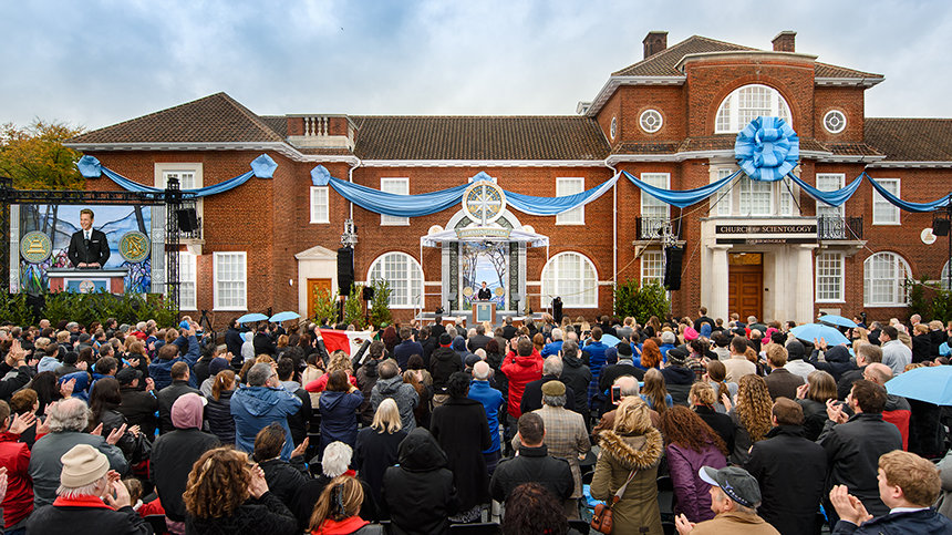Und genau in diesem Geist verkündete David Miscavige, das kirchliche Oberhaupt der Scientology Religion: „Wenn dieses Einweihungsband fällt, hebt sich ein Vorhang ... und so wird es die Verantwortung jedes Scientologen sein, Englands ,Salz der Erde‘ Auftrieb zu verleihen und dadurch eine industrielle Revolution in ein Erwachen des Geistes umzuwandeln.“