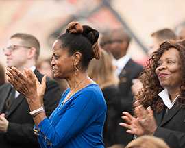 Der ständige Regen stoppte wie bestellt nur wenige Momente vor dem Start der Feier. „Harlem ist unvergleichlich“, so David Miscavige, Vorsitzender des Vorstands Religious Technology Center und kirchlicher Leiter. „Die hiesigen Renaissancedichter, Bühnenschriftsteller, Maler, Autoren und Musiker – schon beim Vorlesen der Namen hat man ein ehrfürchtiges Gefühl: Duke Ellington, Cab Calloway, Billie Holiday, Claude McKay und Louis Armstrong. Was ist sonst noch zu sagen außer: ,Wenn man Harlem aus der amerikanischen Geschichte herausnimmt, ist alles andere nur lauwarm.‘“