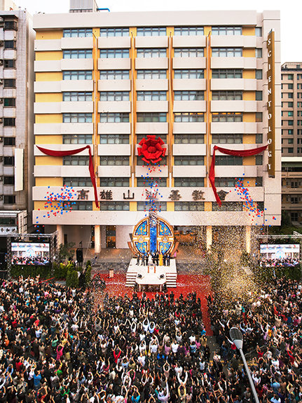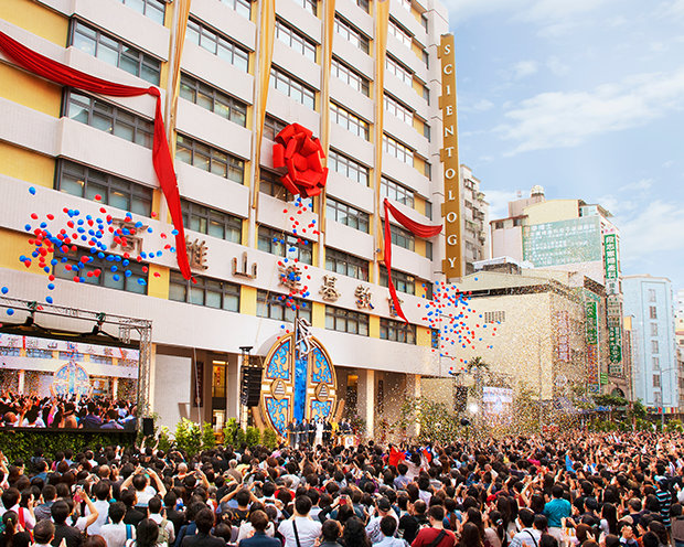 Am 7. Dezember 2013 jubelte unter einem Konfettiregen und einer Wolke von Luftballons eine Menge von über 4000 Zuschauern, als das Band anlässlich der Einweihung der ersten Scientology Kirche in Taiwan fiel, der ersten Idealen Organisation in Asien.