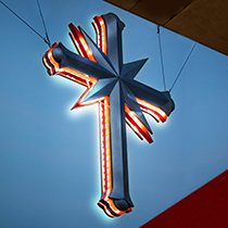 Zur Organisation gehören auch ein komplettes Restaurant und ein Café. Und die Kapelle – die größte aller Idealen Orgs – steht sowohl für Sonntagsandachten und Trauungen als auch für Veranstaltungen für die gesamte Gemeinde zur Verfügung, die Mitgliedern aller Glaubensbekenntnisse offenstehen.