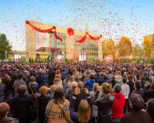 Tausende kommen im italienischen Kultur- und Modezentrum Mailand zusammen, um die Eröffnung der größten Idealen Scientology Organisation auf dem Planeten zu feiern.