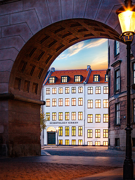 Dänemarks neue Scientology Kirche ist 5 Stockwerke hoch und steht nur wenige Schritte vom „Strøget“ entfernt, Kopenhagens berühmter Fußgängerzone, wo jeden Tag 75 000 Passanten entlanggehen. Die Kirche dient auch als Drehscheibe für eine Anzahl von humanitären Initiativen, welche sich die Anerkennung von Kopenhagens Stadtgemeinschaft verdient haben.