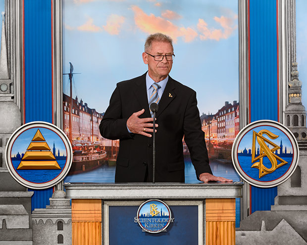 David Miscavige, kirchliches Oberhaupt der Scientology Religion, leitete die Einweihungszeremonie und berichtete über die Reise, die zu diesem epischen Erfolg führte. „Wie sich vielleicht einige von Ihnen noch erinnern können, trafen wir uns einmal um die Mitternachtsstunde. Dort präsentierten Sie eine Zukunftsvision dieser Kirche. Ich machte Ihre Vision auch zu der meinen und Sie versprachen, sie zu einer Tatsache zu machen. Am heutigen Tag also, als selbst Wind, Eisregen oder Schnee mich nicht hätten fernhalten können, kam ich stattdessen an einem glorreichen Frühlingstag hier an, um Ihnen zu sagen: ,Sie haben es geschafft. Sie haben es getan. Sie haben es gesehen und es an sich genommen. Da steht es nun, dieses Gebäude – die am besten platzierte Scientology Kirche der Welt –, im Namen der spirituellen Freiheit und der Ausübung des ewigen freien Willens für ganz Dänemark.‘“