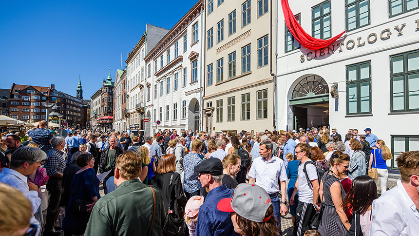 So kam es, dass an einem herrlichen dänischen Nachmittag sich mehr als 2500 Scientologen und ihre Gäste auf diesem Kopfsteinpflasterplatz versammelten, um ein neues Kapitel in der Geschichte einer der ältesten und an Kultur reichsten Metropolen Skandinaviens zu feiern und ebenso den nächsten Schritt in dieser Periode des Wachstums der Scientology Kirche.