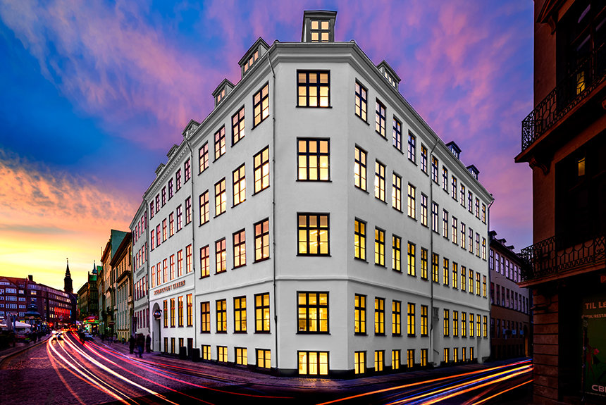 Die Kirche konzipierte es neu, restaurierte und erneuerte es, um es zu ihrem neuen Zuhause im Zentrum von Kopenhagen zu machen. Dieses neoklassizistische Gebäude mit seinen 3700 Quadratmetern Nutzfläche wurde im Jahre 1796 erbaut. Es entstand aus den Flammen des „großen Feuers“, das nur ein Jahr vorher den Bezirk des Nytorv/Gammeltorv heimgesucht hatte. In der Tat schrieb die Stadtplanung die charakteristische „gebrochene Ecke“ des Gebäudes vor, um Wagen der Feuerwehr mit ihren langen Leitern leichter Zugang zu den engen Gassen der Stadt zu gewähren.