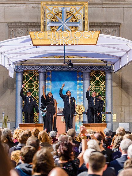 Den Hintergrund der großen Feier bildete das achtstöckige Gebäude der Scientology Kirche, östlich des Wolkenkratzers 150 West Jefferson und direkt gegenüber von Detroits Hart Plaza. Der Standort ist ein wahrer Grundstein – Stätte des ersten Gebäudes von Fort Pontchartrain – was später zu Detroit werden sollte. Um der Geschichte noch mehr Bedeutung beizumessen, das eingeweihte Gebäude war auch die erste Kirche der Stadt – gebaut im Jahre 1701.