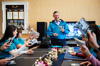 Die Gabe dieses Wissens, merkte David Miscavige an, wurde der Welt mit einer Freundlichkeit übergeben, die sich im Geist der Kooperation und des Diensts an der Gemeinde widerspiegelt, den auch dieses neue Zentrum repräsentiert. Er fuhr fort: