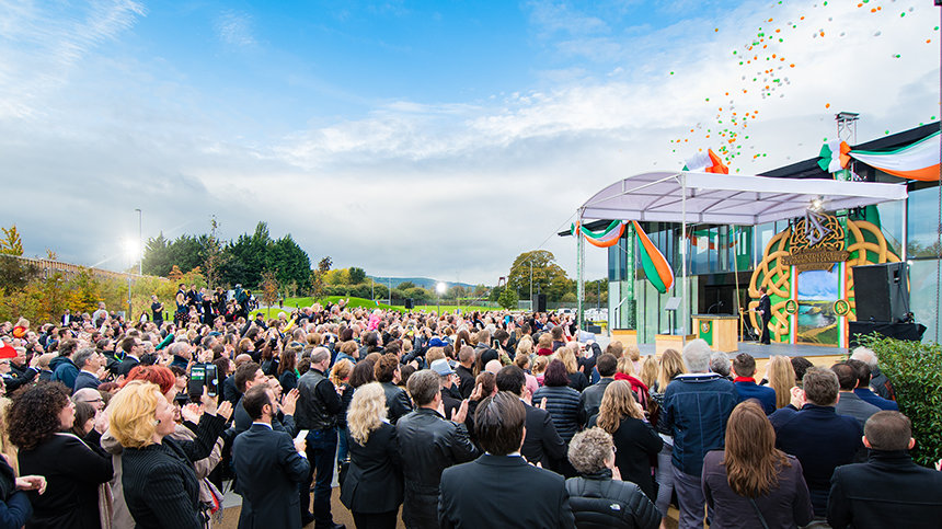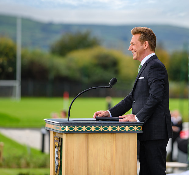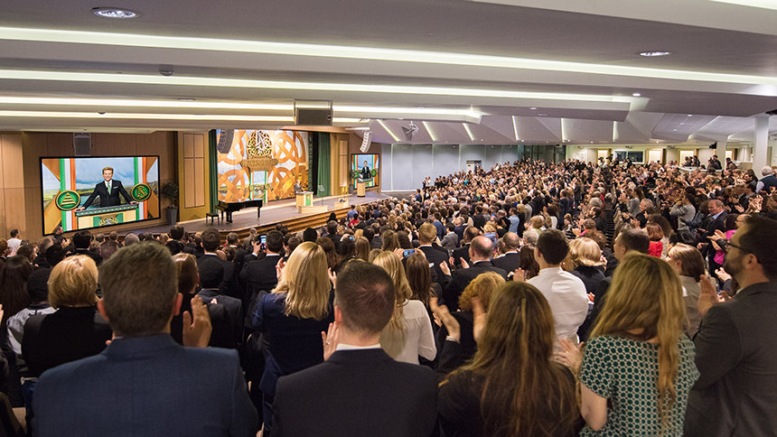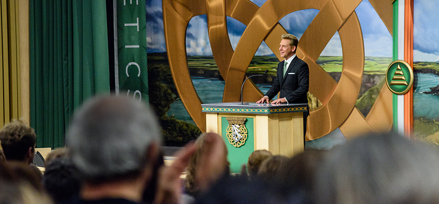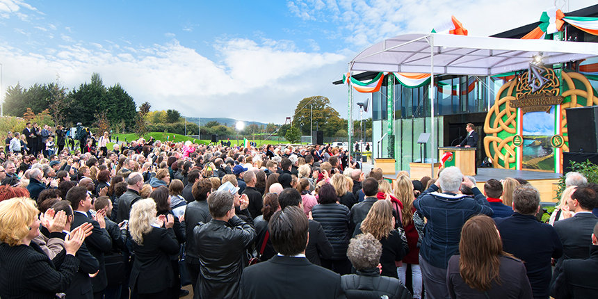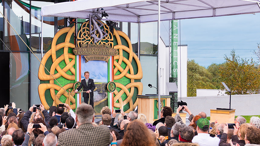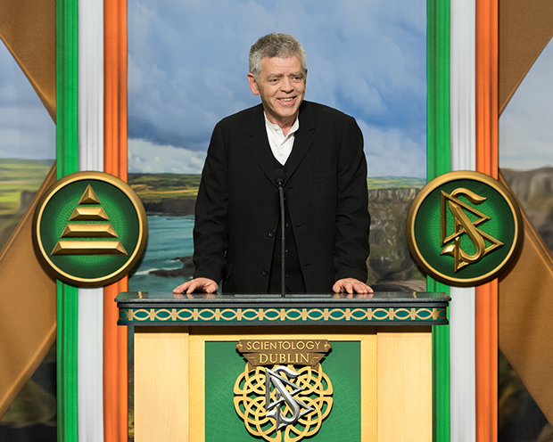 „Heute erfüllen wir ein Gelöbnis, ein Land zu ehren, das unser Gründer, L. Ron Hubbard, über alle Maßen liebte, und ebenso das Volk, das er als wunderbar warmherzig beschrieb, auch wenn das Wetter gelegentlich nicht so ist“, teilte David Miscavige, das kirchliche Oberhaupt der Scientology Religion, den Anwesenden mit. „Und wenn das nicht schon genug sagt, dann lassen Sie mich auch Ihren William Butler Yeats zitieren, der schrieb: ‚Der Mensch lebt und stirbt viele Male zwischen seinen beiden Ewigkeiten ... Und das alte Irland hat es schon immer gewusst.‘“