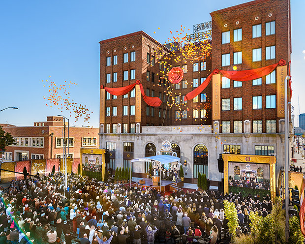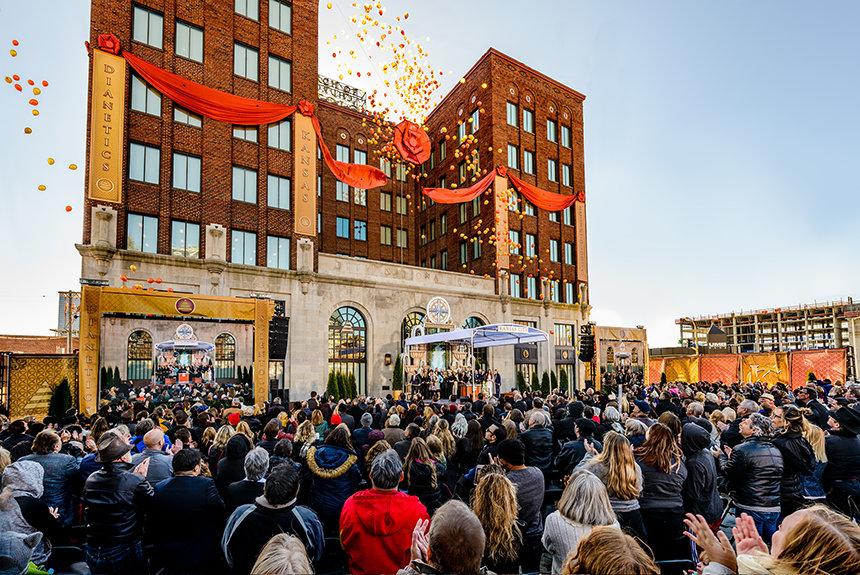 An einem sonnigen Herbsttag, der den perfekten Rahmen bildete, versammelte sich eine Menge von mehr als eintausend an der 18. und Grand, um eine bemerkenswerte neue Scientology Kirche, die ihre Türen öffnete, zu begrüßen.