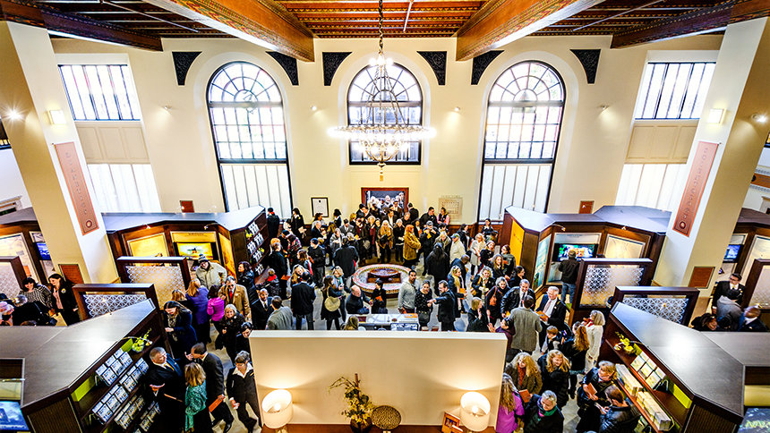 Jeff Owens, Vizepräsident des Kunstviertels Crossroads, würdigte die Arbeit der Kirche bei der Restauration ihres neuen Zuhauses mitten im Herzen von allem: „Das stimmt, Ihr Zuhause befindet sich direkt im Zentrum des Kunstviertels Crossroads. Aber Sie haben das nicht für selbstverständlich gehalten – Sie sind in Aktion getreten. Als Sie daher kamen und dieses geschätzte Wahrzeichen restaurierten, sagten Sie: ‚Kunst hat keine Grenzen – wir werden gleich hier auf diesem Gelände ein Meisterwerk schaffen.‘ Ich war wirklich erstaunt, als ich in Ihre große Eingangshalle schritt und sah, was Sie geschaffen haben. So wird Kansas Citys Americana auf wunderschöne Weise erhalten. Das heißt, Ihr Zuhause spiegelt die Persönlichkeit unserer Heimat als Gemeinschaft wider.“