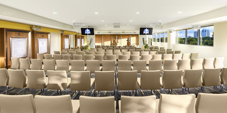 Die Kapelle der neuen Scientology Kirche Miami ist so gestaltet, dass darin Gemeindeversammlungen wie beispielsweise Sonntagsandachten, Hochzeiten und Namensgebungszeremonien stattfinden können. Sie stellt auch den perfekten Rahmen für Tage der offenen Tür dar, Gemeindeversammlungen, Vormittagsbüffets für Bürgerinitiativen und Bankette für Mitglieder aller Glaubensrichtungen.