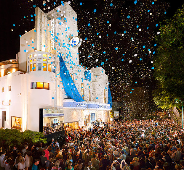 Die Fassade im International Style und Art Déco hat ebenfalls ihre ursprüngliche Pracht zurückerhalten - von den farbigen Bockfenstern und den dekorativen Gittern bis hin zum auffälligen „Alhambra“-Zeichen, das den eindrucksvollen Turm ziert. Die Fassade im Internationalen Stil und Art Déco hat ebenfalls ihre ursprüngliche Pracht zurückerhalten - von den farbigen Bockfenstern und den dekorativen Gittern bis hin zum auffälligen „Alhambra“-Zeichen, das den eindrucksvollen Turm ziert.