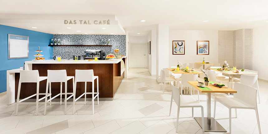Das Café bietet Veranstaltungsteilnehmern einen Ort zum Austauschen, sowie auch für Gemeindemitglieder während den Pausen bei ihren Scientology Diensten.