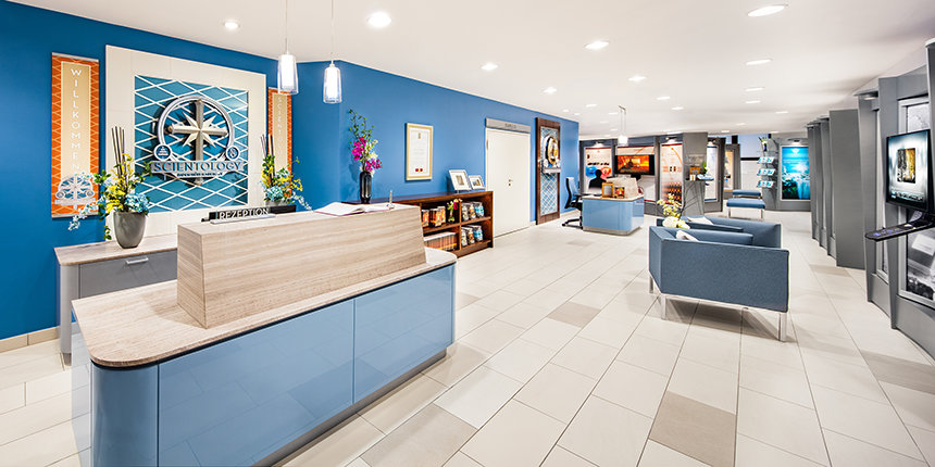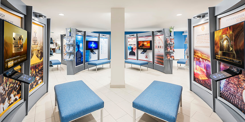 Wenn Besucher Stuttgarts neue Scientology Kirche betreten werden sie von einer Auswahl von Stahlblau, Chrom und Grautönen begrüßt, welche die hightech Identität dieser Stadt wiederspiegeln. Die hellen Akzente der Einrichtung zusammen mit dem Mahagoniholz verleihen dem Informationszentrum, in dem eine Einführung in die Dianetics und Scientology geboten wird, eine ruhige, einladende Atmosphäre. Seine Displays mit mehr als 500 Filmen in 17 Sprachen präsentieren die Glaubensgrundsätze und die Praktiken der Scientology Religion sowie das Leben und Vermächtnis des Gründers, L. Ron Hubbard.