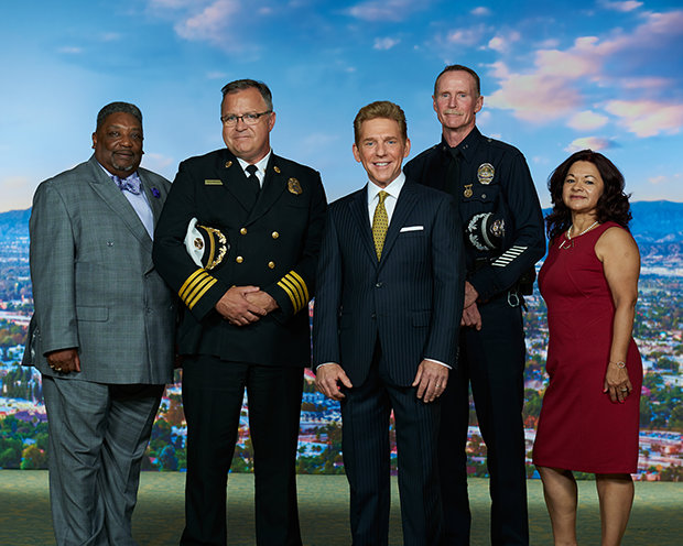 Ans Licht gebracht wurde diese Hingabe durch die anwesenden Vertreter von San Fernando Valley, die die Kirche willkommen hießen: Robert Green, Stellvertretender Polizeipräsident von Los Angeles, Dienststelle Valley; Trevor Richmond, Stellvertretender Kommandant der Feuerwehr von Los Angeles, Dienststelle Valley; Nellie Barrientos, Direktorin des Bildungsprogramms von Los Angeles; und Bischof Franklin Harris, Führungsmitglied des Pfarrerkonzils des Bezirks Los Angeles.