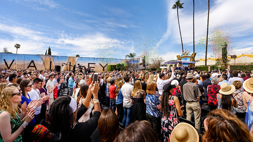 Und so versammelten sich am Sonntag, den 19. März, um 13 Uhr 5000 Scientologen, um zu erleben, wie die größte Ideale Scientology Kirche Nordamerikas zum Leben erwacht. Es war eine Zeremonie, die der Größe, der Reichweite und dem Wesen des neuen Zuhauses von Valley angemessen war. Sie reichte von einem Medley klassischer Titelmelodien aus dem goldenen Zeitalter des Kinos bis zu der „V für Valley“-Hymne, die extra für diesen Anlass komponiert und arrangiert wurde. Die Tausenden Anwesenden applaudierten jedem der begeisterten Würdenträger, die die umfassenden gesellschaftlichen Auswirkungen der Kirche lobten.