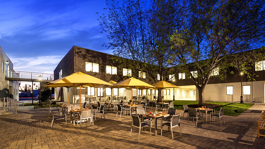 Die neue Kirche befindet sich direkt neben Nord-Hollywoods geschäftigem Verkehrsknotenpunkt, wo sich die Burbank und Lankershim Boulevards mit der Tujunga Avenue kreuzen und etwa 60 000 Autos jeden Tag vorbeifahren. Die Anlage umfasst auf über eineinhalb Hektar Land etwa 8800 Quadratmeter Nutzfläche und ist nur wenige Blocks vom Künstlerviertel NoHo entfernt. Sie ist bereit, Entscheidungstreffer aus der Umgebung miteinander in Kontakt zu bringen.