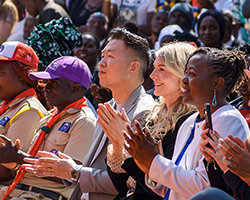 Bischof Albert Chikuni, Präsident der Interreligiösen Vereinigung für Frieden und Entwicklung Simbabwe, der 40 Gemeinden in der gesamten Region betreut, erinnerte daran: „L. Ron Hubbard kam nicht, um sich selbst zu bereichern – sondern um andere zu bereichern ... Wir haben gesehen, was passiert, wenn Menschen gespalten sind – durch Politik, durch Religion, durch Klassen. Aber wir haben auch die Stärke gesehen, die von Einheit kommt – wenn Unterschiede beiseitegelegt werden, um eine gemeinsame Zukunft zu verfolgen. Das ist die Arbeit des Friedens“, sagte er. „Heute ehren wir den Abdruck, den Mr Hubbard hier in Alexandra Park hinterlassen hat. Wenn wir seine Lehren und die Weisheit innerhalb dieser Mauern weitertragen, glaube ich, dass wir einen Himmel auf Erden erschaffen können.“