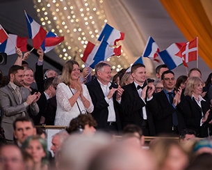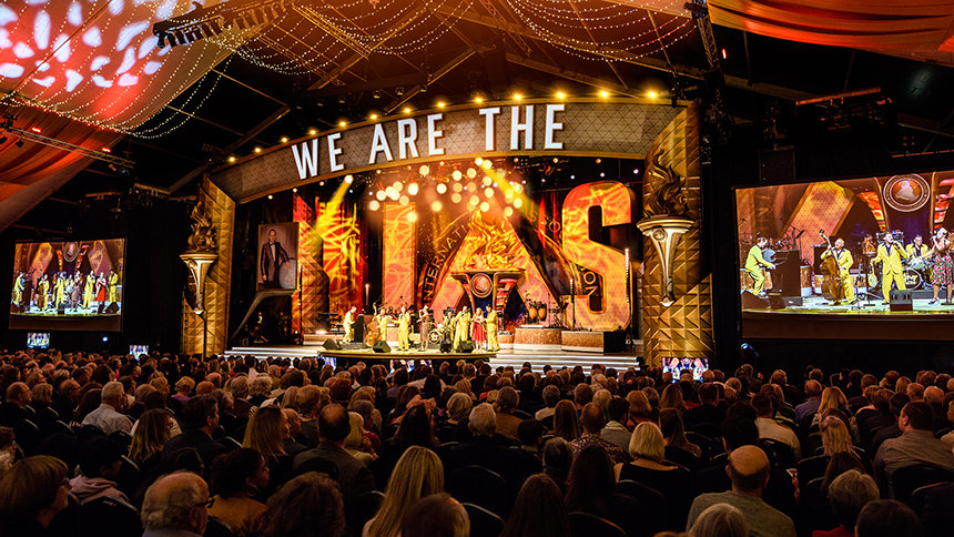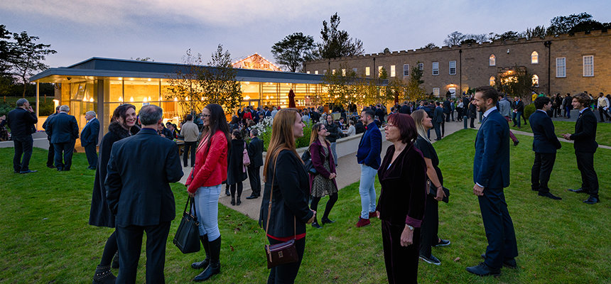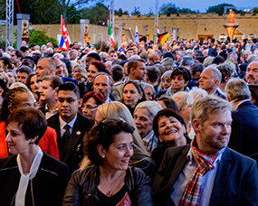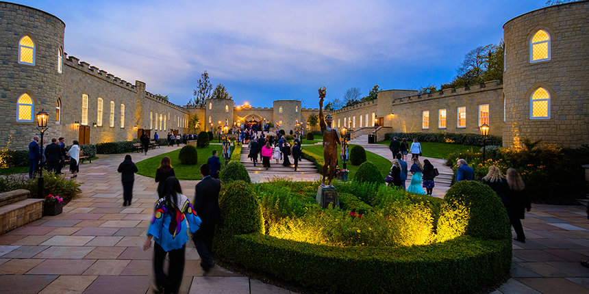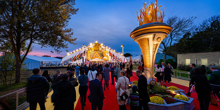 Nach dem Passieren des Tors, nun auf dem Gelände des Manors, entlang der geschwungenen Auffahrt zum Pavillon und zur Great Hall bis hin zur Bühne im großen Festzelt hörte man die aus mehr als 65 Ländern angereisten Mitglieder der International Association of Scientologists sich in vielen verschiedenen Sprachen unterhalten, während sie sich alle mit derselben Zielsetzung zum Ort der Feierlichkeiten begaben: um ihre Menschlichkeit und die der gesamten Menschheit zu feiern.