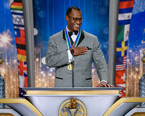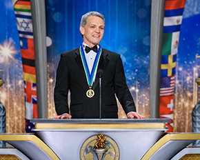 Noch viele weitere Berichte wurden präsentiert, doch die wichtigsten waren jene über die Stars dieses strahlenden und lebendigen Abends: die drei IAS-Freiheitsmedaillengewinner. Jeder von ihnen verkörpert den unablässigen Fortschritt auf das Ziel der Scientology Religion hin: eine friedliche, produktive und verbrechensfreie Welt, wo soziale Gerechtigkeit herrscht. Als David Miscavige sie einen nach dem anderen vorstellte, zeigten sich in ihren Geschichten Gemeinsamkeiten hinsichtlich ihrer Arbeitsethik, ihres Durchhaltevermögens und ihrer Hingabe: