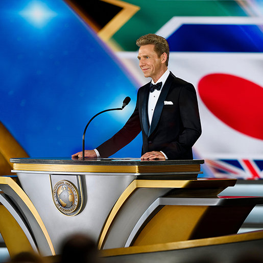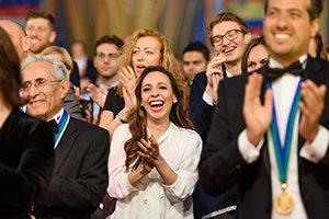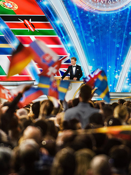 Der Abend setzte sich mit einem Blick auf die humanitären Leistungen durch IAS-gesponserte Initiativen fort: United for Human Rights, ein Aufklärungsprogramm, das auf der Allgemeinen Erklärung der Menschenrechte basiert und sich für deren Einführung durch Regierungen auf der ganzen Welt einsetzt; Foundation for a Drug-Free World, das größte nichtstaatliche Drogenaufklärungsprogramm der Erde; Der Weg zum Glücklichsein, L. Ron Hubbards nichtreligiöser Moralkodex, ein Leitfaden mit 21 Regeln, der auf gesundem Menschenverstand beruht.
