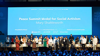 - Der 17. Weltfriedensgipfel der Nobelpreisträger überreichte die Auszeichnung des Friedensgipfels für soziales Engagement an Youth for Human Rights International und deren Vorsitzende, Mary Shuttleworth. Die Auszeichnung, die von Nobelpreisträgern persönlich verliehen wird, symbolisiert einen bedeutenden Beitrag für Frieden und Menschenrechte.