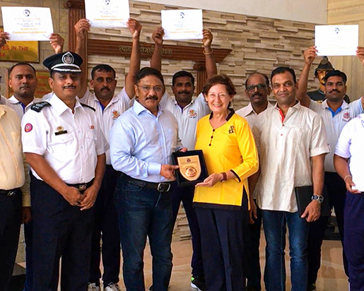 - In Mumbai, Indien, gingen die Ehrenamtlichen Geistlichen eine Partnerschaft mit dem Staatsdirektor der Feuerwehr ein und integrierten die Technologie der Ehrenamtlichen Scientology Geistlichen so in den Lehrplan der Feuerwehrmänner, um Effizienz zu steigern und Leben zu retten.