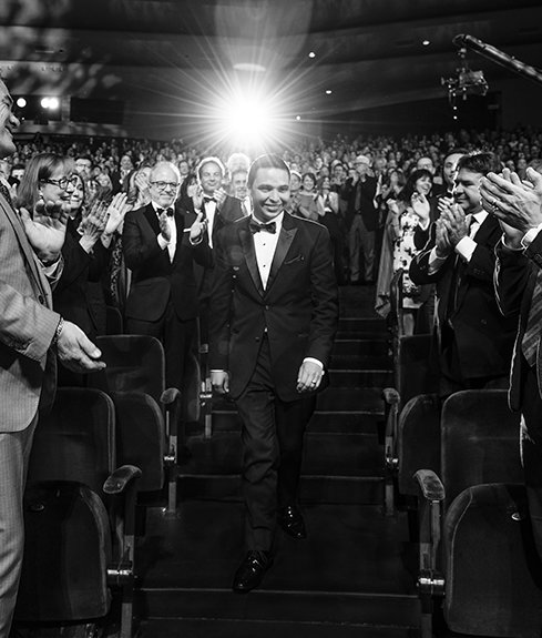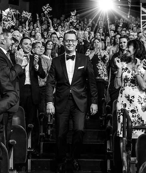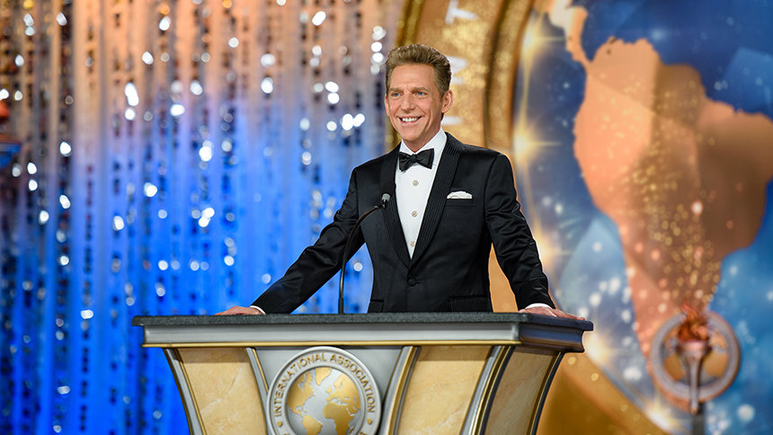 Der Abend begann mit einer meisterhaften musikalischen Darbietung, welche die Teilnehmer auf ihre Füße brachte und erkennen ließ, dass dieser außergewöhnliche Abend unzählige Abenteuer bieten würde. Tatsächlich war dies die Weltklasseeinführung für den Moment, als das kirchliche Oberhaupt der Scientology Religion, Mr David Miscavige, die Bühne unter donnerndem Applaus und lang anhaltender Standing Ovations betrat.