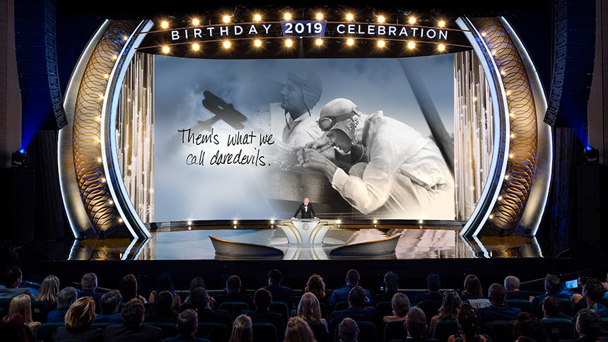 Die Präsentation begann 100 Meter über den Getreidefeldern des Mittleren Westens, wo ein zwanzigjähriger Kunstflieger namens „Flash“ Hubbard den Ortsansässigen einschließlich eines neunjährigen Modelflugzeug-Enthusiasten zeigte, was es heißt, zu fliegen. Dieser Junge – heute ein erwachsener Mann – erinnerte sich daran, wie der junge Pilot den neugierigen Bewohnern – einem nach dem anderen – nach einer Landung auf einer Kuhweide die Gelegenheit gab, über die Felder emporzusteigen. Dieser Anlass hinterließ einen solchen Eindruck auf die Einheimischen, dass dieser Tag ein halbes Jahrhundert später als L. Ron Hubbard Tag gewürdigt wurde.