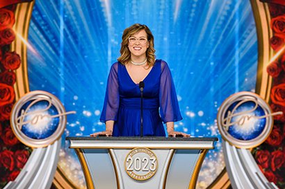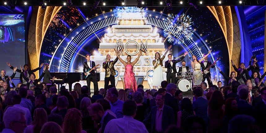 Dann folgte der Moment, um die Champions des LRH-Geburtstagsspiels bekannt zu geben. Die Bühne verwandelte sich in einen in Rosen gerahmten Kreis der Gewinner, mit funkelnden Lichtern, Renntrikots und glänzenden Pokalen. Das Geburtstagsspiel führt die Tradition fort, Mr Hubbard mit dem Geschenk der Expansion in jeder Scientology-Kirche zu feiern.