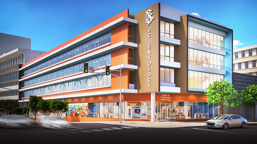 Er enthüllte die erste Ideale Org dieses Jahres, die in die Bauphase kam: die künftige Ideale Scientology-Kirche Puerto Rico. Das Gebäude aus der Ära der 1950er, das im Herzen der Hauptstadt San Juan steht, wurde von einem der frühen Schützlinge des legendären Architekten Frank Lloyd Wright entworfen.