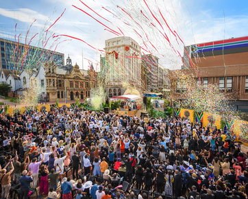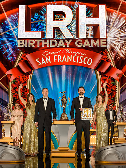 Der Abend drehte sich um drei großartige Highlights: die Enthüllung eines Trios neuer Wahrzeichen – Orte, an denen LRH monumentale Leistungen vollbracht hat, denen nun für immer gedacht wird; dann die Neuigkeit von der bevorstehende feierlichen Eröffnung der neuesten Idealen Scientology-Kirche und das traditionelle Geburtstagsspiel, bei dem die Gewinner eines internationalen Rennens bekannt gegeben werden, getragen vom Ziel, Expansion zu schaffen.