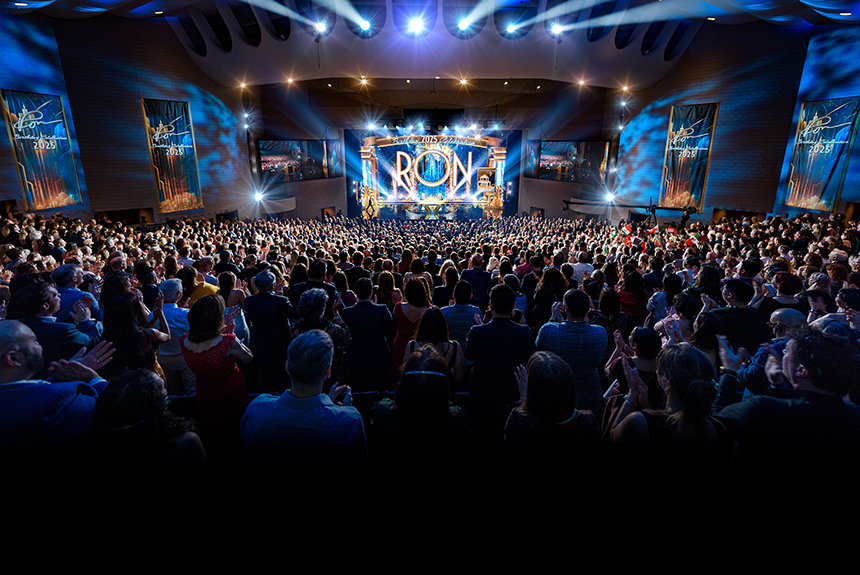 „Heute Abend steht noch ein weiterer Punkt auf der Tagesordnung. Es ist nun an der Zeit, hinter den ‚Spiegel‘ zu treten und zu betrachten, was uns morgen bevorsteht“, sagte er. Und für die Tausenden von Gästen war das, was folgte, eine unerwartete, unvergessliche und unumstößliche Offenbarung: eine atemberaubende Vorschau auf die zukünftige L. Ron Hubbard Hall – ein Meisterwerk, das dazu bestimmt ist, den Flag-Campus zu krönen.