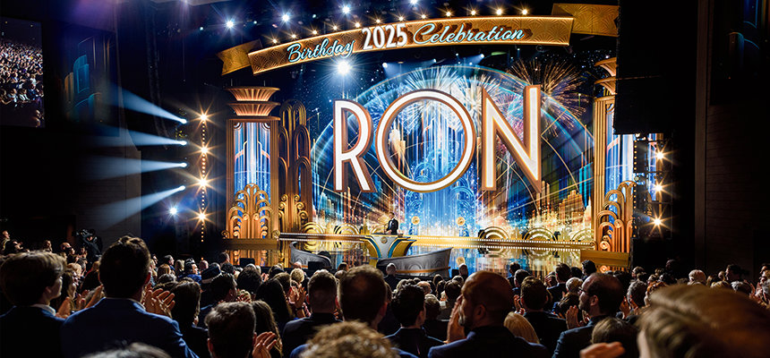 „Heute Abend ehren wir LRH: sein Leben, sein Vermächtnis, seine Geschichte und sein Erbe und vor allem den Mann selbst“, begann Mr Miscavige. „Vor allem heute Abend ist L. Ron Hubbard uns viel näher. Oder vielleicht sind wir es, die näher rücken. Und so betreten wir das Universum von LRH. Ein Ort, an dem erstaunliche Dinge passieren: wo auf seinem Geburtstagskuchen für jedes menschliche Wesen auf der Erde eine Kerze steht; wo es eine Geburtstagskarte für alle gibt, die in Kürze ihren ersten Atemzug machen werden, und globalen Einfluss, der so groß ist, nun ja, schauen Sie sich einfach um – dass Scientologists aus ganzen 71 Ländern sich im Moment in genau diesem Saal versammelt haben!