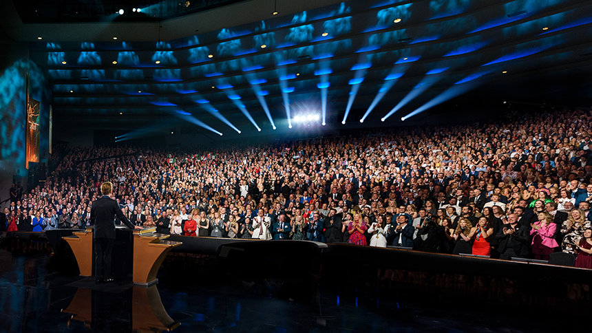 Das mitreißende Tempo setzte sich fort und steuerte auf einen der am meisten herbeigesehnten Momente des Abends zu: die Bekanntgabe der Gewinner des jährlichen LRH-Geburtstagsspiels – eines internationalen Rennens, das mit dem Ziel gespielt wurde, in einer von vier verschiedenen Ligen den ersten Platz zu belegen. Auf sechs Kontinenten und in Hunderten von Städten bewegen sich Scientology-Missionen, -Kirchen, Fortgeschrittene Organisationen und Continental Liaison Offices mit unermüdlicher Dynamik vorwärts. Dieses Rennen wird nicht nur durch Geschwindigkeit, sondern auch durch das Ausmaß der Expansion definiert. Und das diesjährige Rennen gehörte zu den am stärksten umkämpften in der Geschichte.