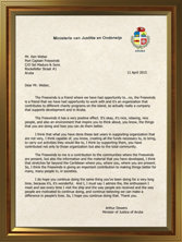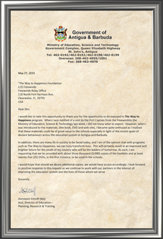 - Eine Anerkennung für die von der Kirche durchgeführte Ausbildung der Verteidigungskräfte der Insel St. Kitts in Menschenrechten. Sie besagte: „Youth for Human Rights bewirkt einen gewaltigen Unterschied.“