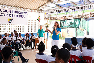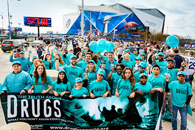 - Die Foundation for a Drug-Free World, die ihre Kampagne vorantreibt, um gegen Drogenmissbrauch vorzugehen, und auf diese Weise einen Präsidentenerlass gegen den Besitz und Konsum von Rauschgift in Kolumbien inspirierte; eine Partnerschaft mit der Landespolizei einging, um Drogen-Aufklärungsseminare in der gesamten Provinz Gauteng, Südafrika, zu halten; und beim 53. Super Bowl in Atlanta, Georgia, eine Drogenaufklärungs-Blitzaktion für eine halbe Million Fans durchführte.
