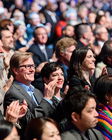 Mitglieder der Kirche und ihre Gäste füllten das Shrine Auditorium in Los Angeles und würdigten das unübertroffene Wachstum des Jahres 2015, das auch dem Jahr 2016 den Weg bereitete – und allen zukünftigen Jahren.