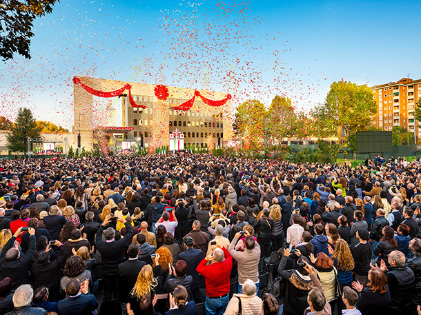 Unter dem Jubel der Veranstaltungsteilnehmer fand die Silvesterfeier damit ihren Höhepunkt, dass David Miscavige einen Bericht über die Eröffnung der weltweit größten Idealen Scientology Kirche präsentierte, die am 31. Oktober in der italienischen Kulturhauptstadt Mailand eröffnet wurde. Auf ihrem 0,6 Hektar großen Anwesen umfasst sie über 9000 Quadratmeter in mehreren Gebäuden, die sehr ins Auge fallen. Ihre Eröffnung stellt die Krönung eines Jahres dar, das für die Scientology Kirche ein spektakuläres Wachstum brachte und ein weiteres, beeindruckendes Jahr voller Errungenschaften vorhersagt.