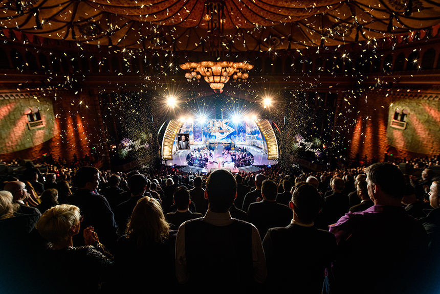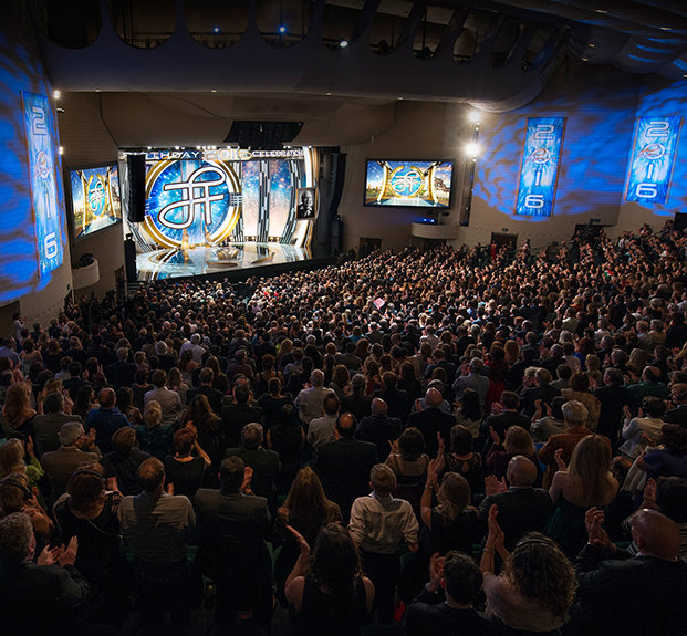 Tausende von Scientologen und ihre Gäste versammelten sich im Shrine Auditorium in Los Angeles, um die Scientology Neujahrsfeier live zu erleben. Die Spannung ließ die Atmosphäre in der bis an die Grenze ihres Fassungsvermögens gefüllten Veranstaltungshalle knistern. Hinter uns liegt ein weiteres Rekordjahr, das alle Erwartungen bei Weitem übertraf. Vor uns liegt eine unaufhaltsame Dynamik, die alle vorangegangenen Jahre noch übertreffen wird.